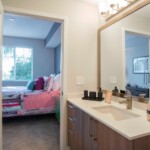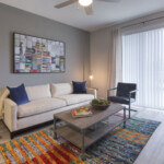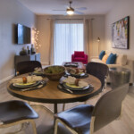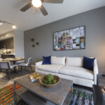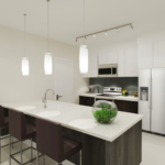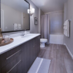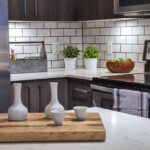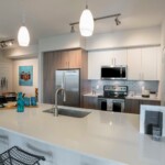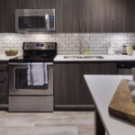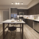 Luxury apartments with energy-efficient appliances, detailed finishes, plank flooring, in-unit washer/dryer, walk-in closet, and more all in a modern, top-of-the-line unit.